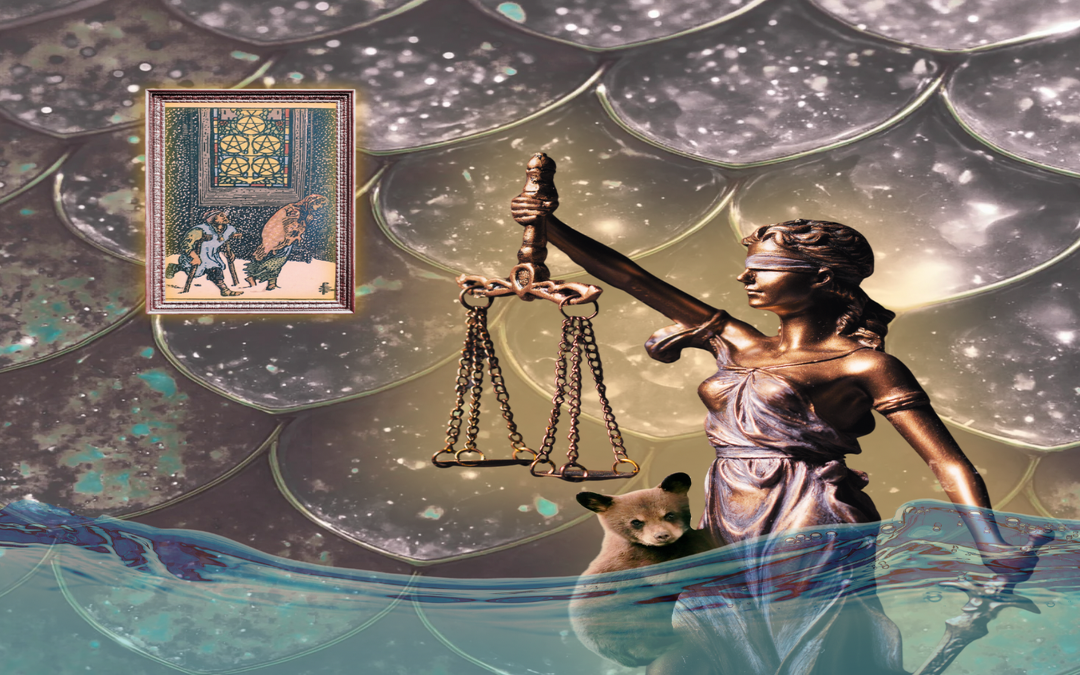 The animal ally for tonight’s show appears as a bear cub, holding close to Justice—symbolizing protection, hibernation, and quiet strength. While our swords are not drawn, they are prepared: to seek justice, protect our communities, and remain vigilant even when we feel blindfolded by winter and uncertainty. We can feel it all around us as something new brews beneath the waters surface. We are not blindfolded by force, but only by our choice, and Lady Justice may appear as if she cannot see beyond the blindfold to some, yet she sees all, she sees behind & beyond the blindfold she wears, standing with fierce fortitude and all knowing strength.